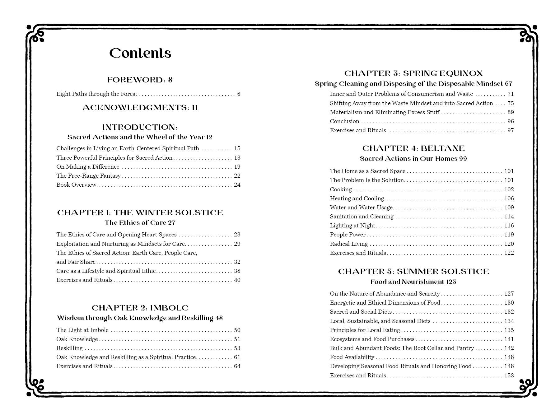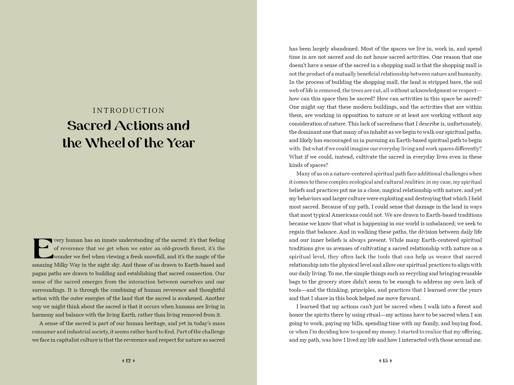 Each chapter is tied to one of the eight holidays, offering specific themes that deepen topics, including home and hearth, lawns and gardens, food and nourishment, ritual items and offerings, reducing waste and addressing materialism, and much more.