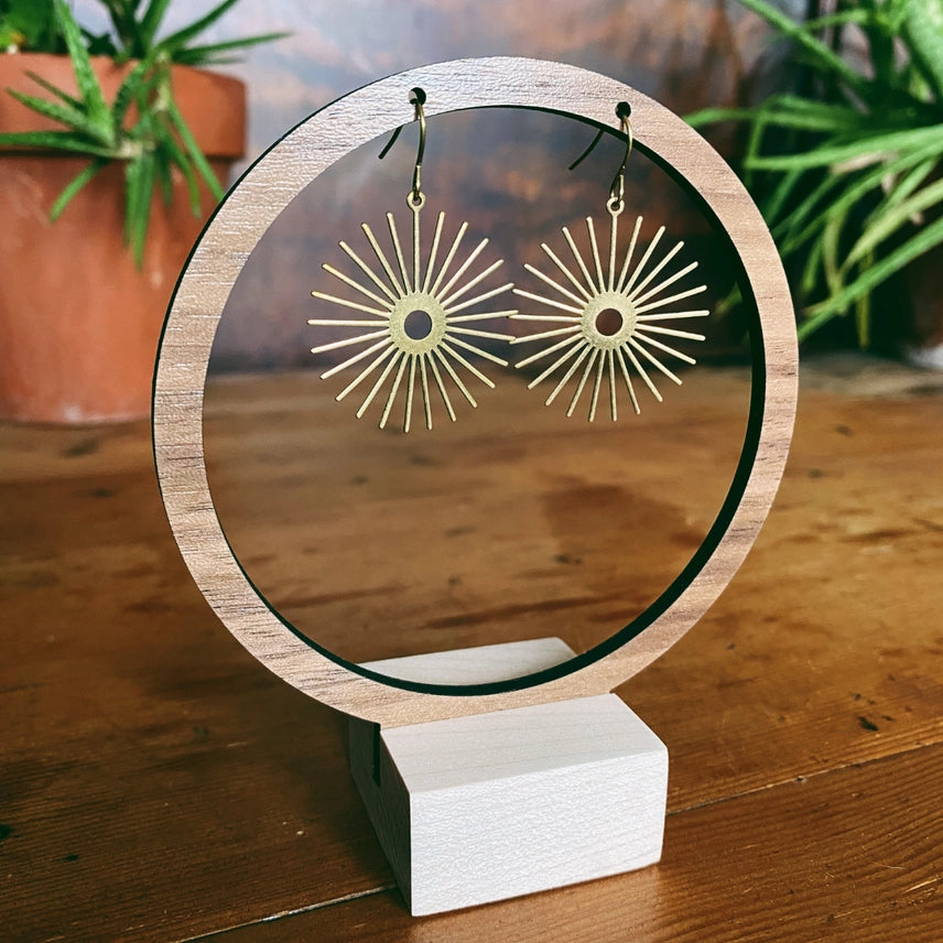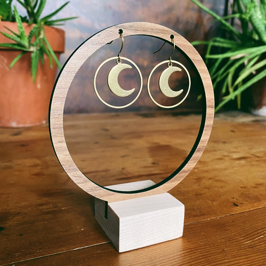 Our Celestial Earrings feature five out of this world designs ;) This earring pack comes with 5 different designs (moon phases, sunbeam, earth sphere, crescent, star).